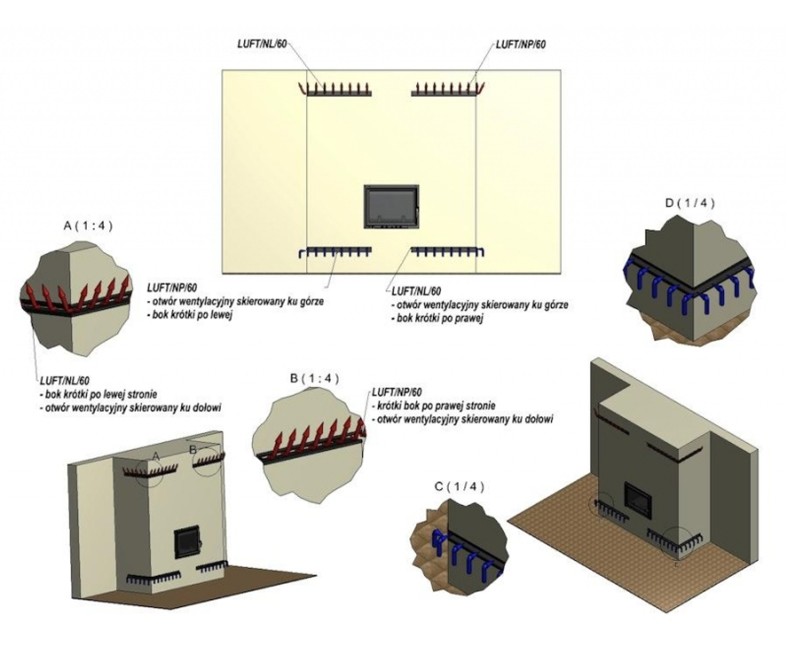 This completes the fireplace grate channel warm air distributed by gravity or mechanical means of fire. It is mounted in the wall of the flue or chimney housing Luft grid construction is characterized in that it has an air inlet masked. When installing the grille should be aware of its proper orientation. If you install the fireplace grille air intakeshould be at the bottom, where the contribution of the inlet should be at the top. will keep adequate convection heated air. grilles are painted with powder, which is characterized by the color fastness and heat resistance. Additionally, paint grille protects against damage mechanical.