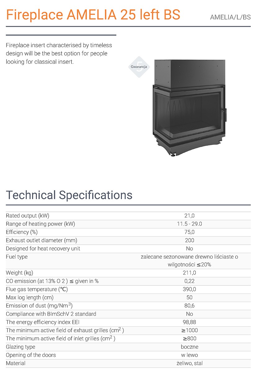 KRATKI AMELIA/L/BS ΑΡΙΣΤΕΡΗ ΓΩΝΙΑ 21KW / 200-250m2 ΕΝΕΡΓΕΙΑΚΟ ΤΖΑΚΙ ΜΑΝΤΕΜΕΝΙΟ