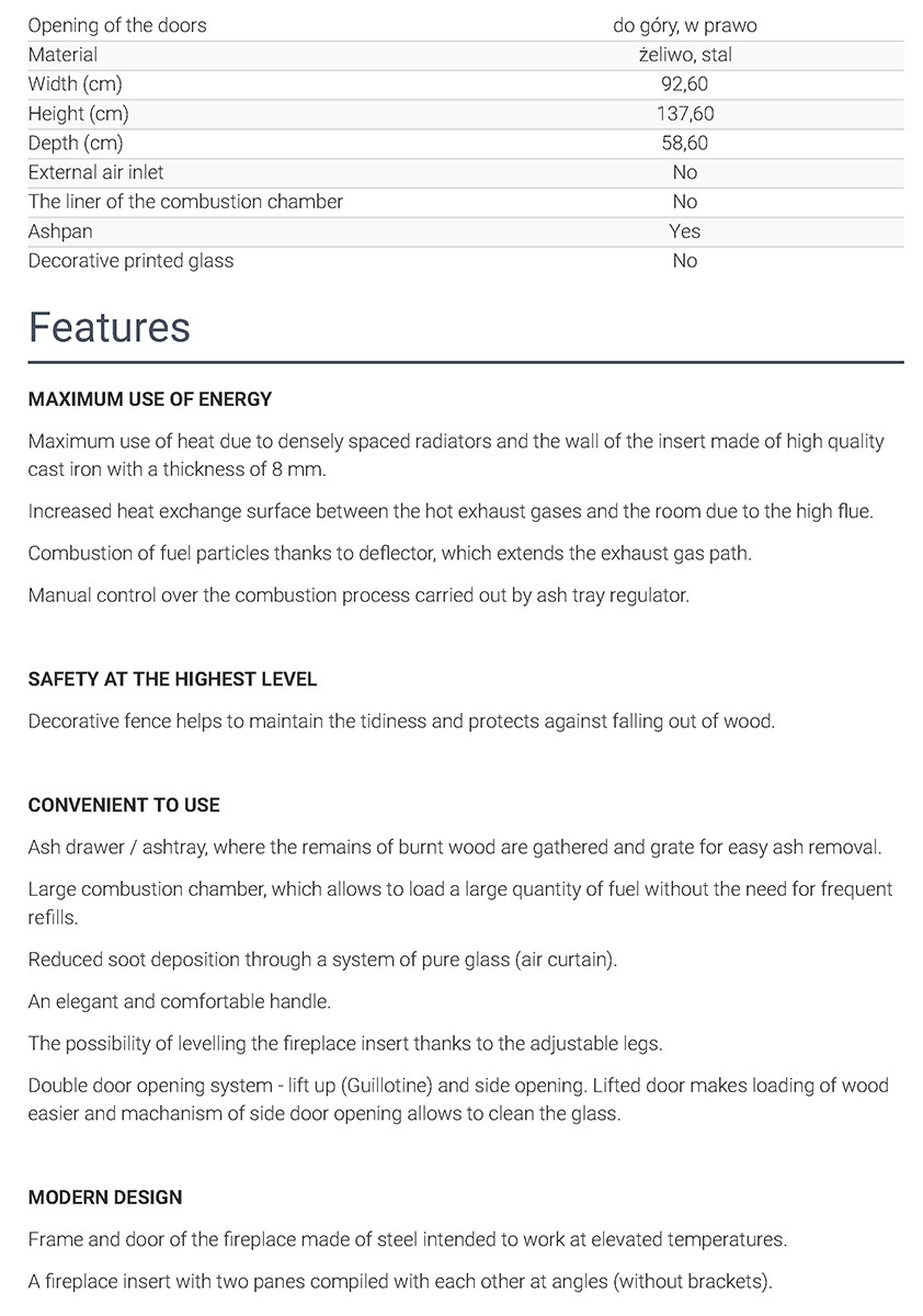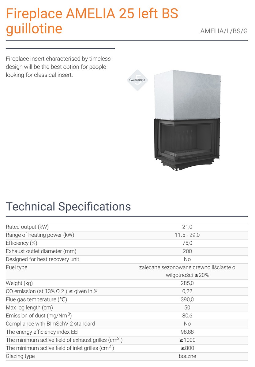 KRATKI AMELIA/L/BS/G ΑΡΙΣΤΕΡΗ ΓΩΝΙΑ 21KW / 200-250m2 ΕΝΕΡΓΕΙΑΚΟ ΤΖΑΚΙ ΜΑΝΤΕΜΕΝΙΟ ΜΕ ΣΥΡΟΜΕΝΗ ΠΟΡΤΑ