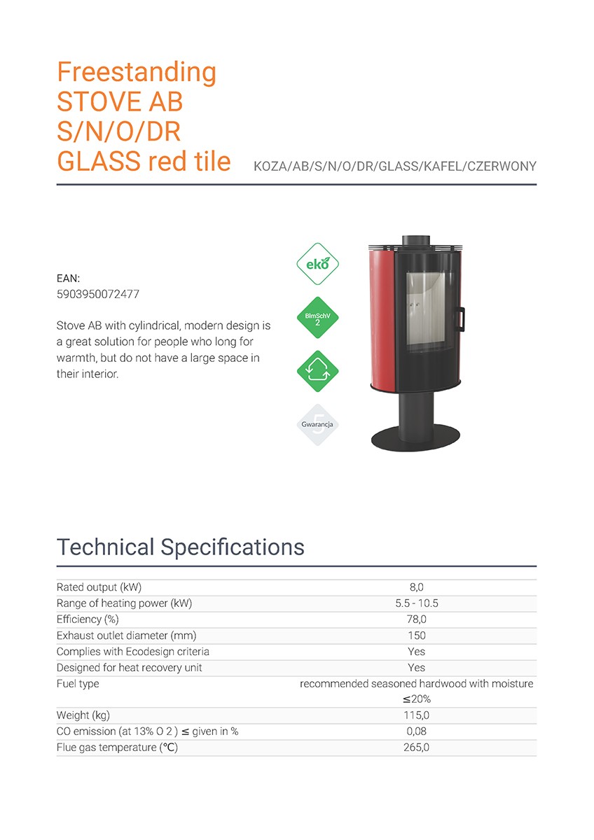 KRATKI KOZA/AB/S/N/O/DR/GLASS/KAFEL/CZERWONY 8KW / 50-70m2 ΠΕΡΙΣΤΡΕΦΟΜΕΝΗ ΕΝΕΡΓΕΙΑΚΗ ΣΟΜΠΑ ΑΠΟ ΧΑΛΥΒΑ ΜΕ ΕΞΩΤΕΡΙΚΗ ΕΠΕΝΔΥΣΗ ΑΠΟ ΚΟΚΚΙΝΟ ΚΕΡΑΜΙΚΟ ΚΑΙ ΦΙΜΕ ΤΖΑΜΙ