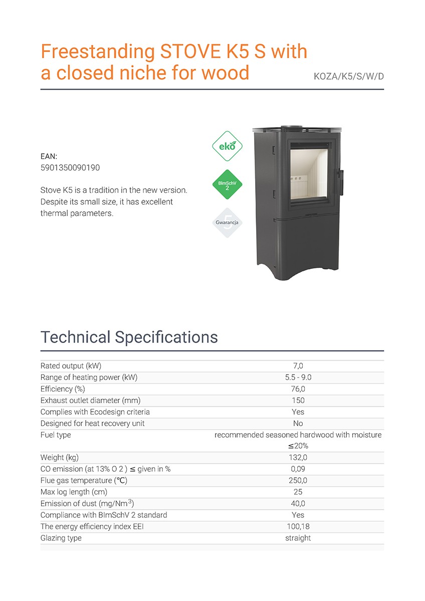 KRATKI KOZA/K5/S/W/D 7KW / 50-70m2 ΕΝΕΡΓΕΙΑΚΗ ΣΟΜΠΑ